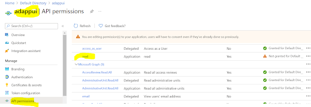 Setup an app registration for the UI/ WEB App.. We will grant this app the read role created in the API app (shown above). Go to Azure AD and select the UI app registration. When we register an application 2 elements get created.